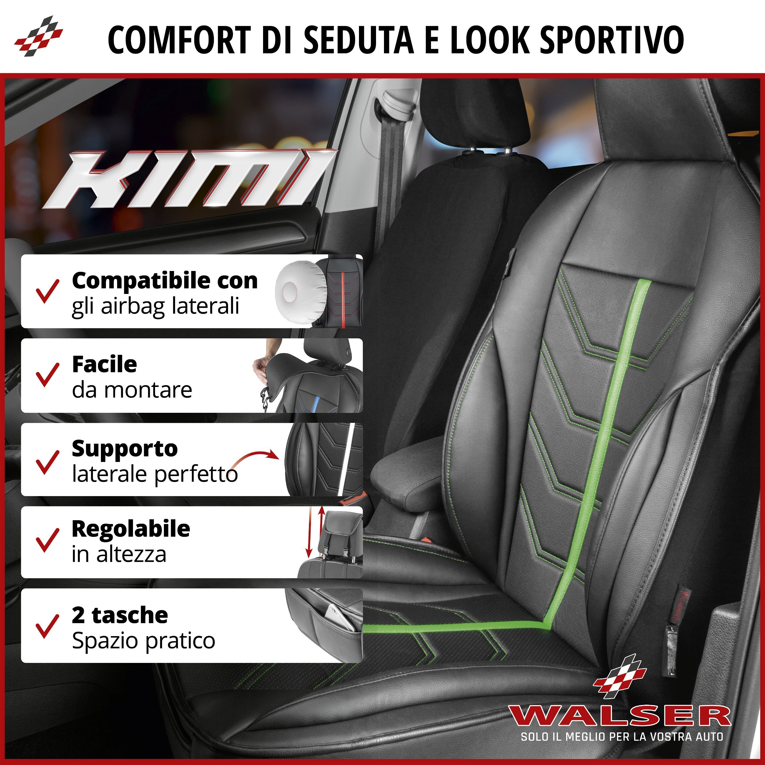 Coprisedili auto Kimi nero/verde, 1 pezzo