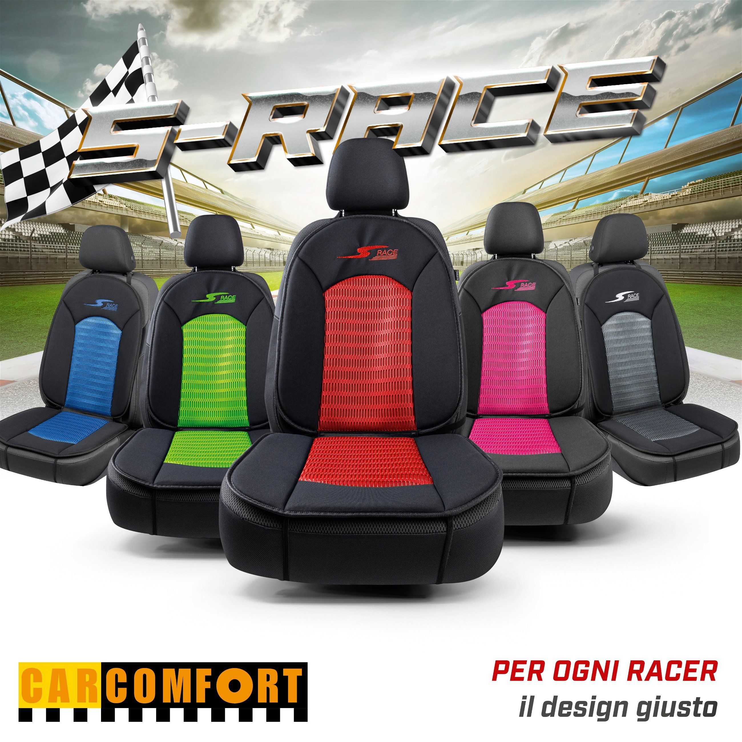 Il coprisedile S-Race diventerà il tuo nuovo prodotto preferito in auto. La rete in poliestere è stata volutamente scelta come materiale per lo strato superiore con l'obiettivo di garantire una buona traspirazione durante la guida. Inoltre, il prodotto conquista per la sua durata di vita particolarmente lunga, è facile da pulire e da mantenere pulito. Ma il coprisedile ha ancora di più da offrire: il prodotto è adatto alle autovetture con airbag laterale integrato, offrendo la massima sicurezza per te e per i passeggeri della tua auto. Il montaggio del coprisedile S-Race è molto semplice. Il coprisedile viene fissato in alto al poggiatesta con una fascia elastica e successivamente assicurato sotto il sedile mediante 2 ganci. In questo modo, il modello rimane saldamente in posizione garantendo il massimo comfort durante il viaggio.